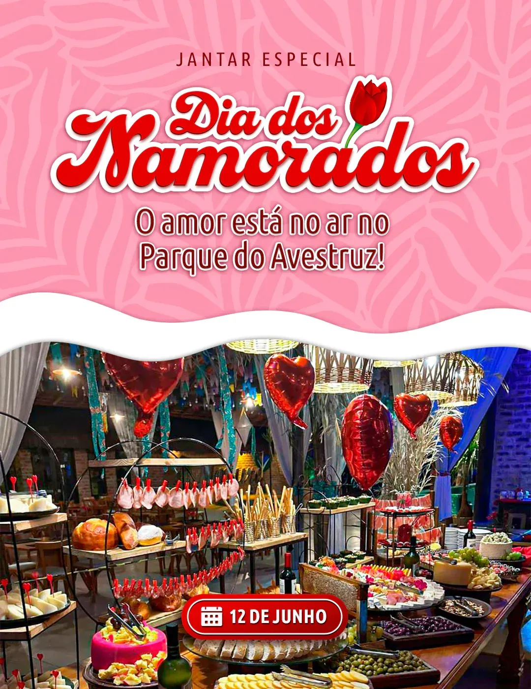 No dia 12 de junho, o Parque do Avestruz se transforma em um cenário romântico para você viver uma experiência única ao lado de quem ama.